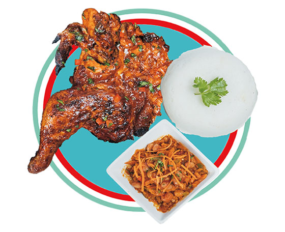 Spicy delicious wors stew in Mnandi Mild or Flame sauce with Pap and Spinach or chakalaka(Choose 1)